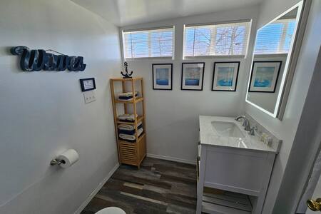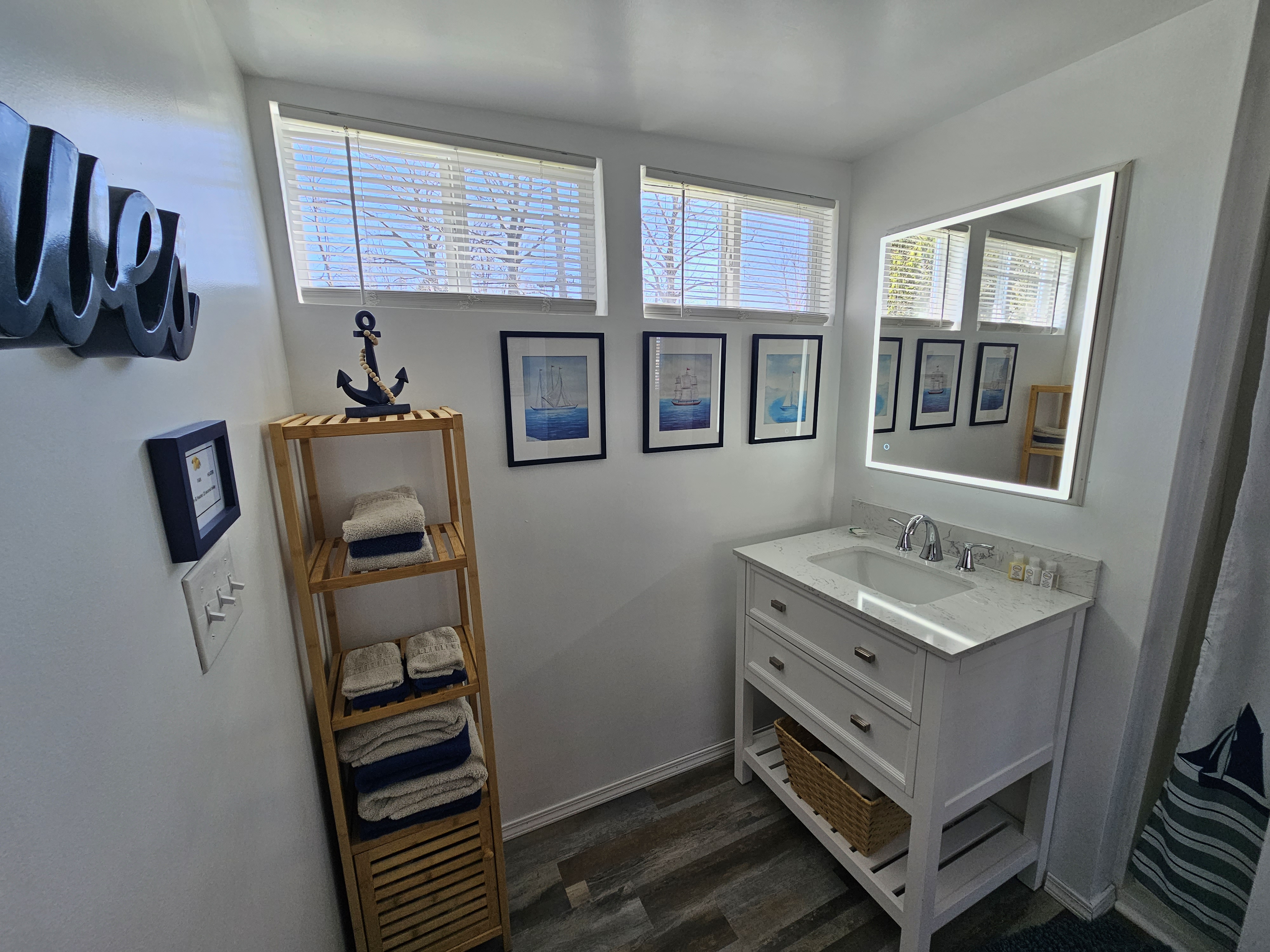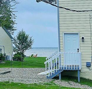 Lemon Drop Cottage is the perfect couples getaway, quiet & romantic, sitting on 1.6 acres, with the waters edge over 400ft from the road. Private and adorably decorated, the cottage is stocked like a tiny house, with all new amenities.The cottage is cleaned thoroughly after each and every guest, with all new towels, bed sheets, and pillowcases. A perfect getaway for a weekend, or those precious few days you can get away and relax. A stairwell with handrails takes you directly down to the water, where were sometimes you can find a few precious feet of beach. Several fire pits are situated within a few feet of the lake, each with Adirondack chairs so you can enjoy a fire, and perhaps even a glass of wine as you watch freighters out in the distance, sailboats, and of course the many beautiful sunsets, no two of which are exactly the same.