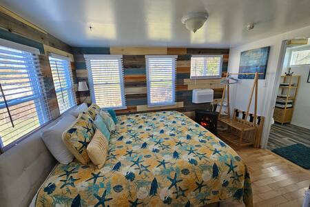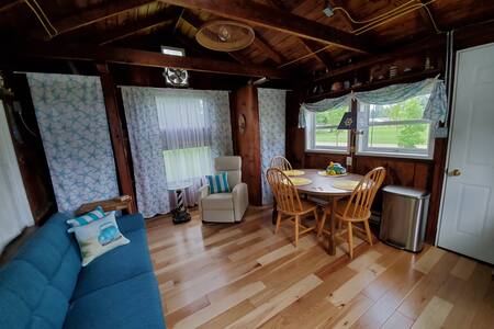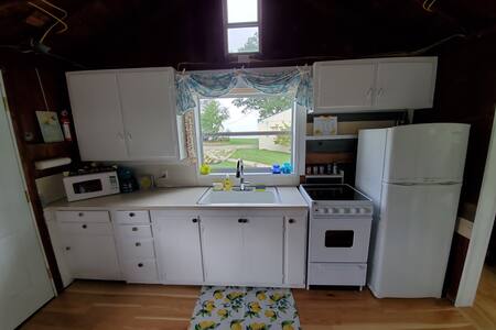 Fully remodeled in 2023, Lemon Drop Cottage is a Lake-Front property, with direct access to Lake Erie. Built in 1949 as a fishing cottage, we were fortunate to rescue some decorative ornaments that date to that era, and have been careful to retain much of the original rustic appeal and aura.The lake is viewable from both the Kitchen and Bedroom windows. Updates for March 2023 include new windows throughout, a fully remodeled bathroom, and a new 12K AC. Hickory and Maple hardwood floors replaced the originals, of the same species. New hot water heater, oven, kitchen table/chairs, a king-size mattress in the bedroom, and a twin-size sofa-bed in the living room. BBQ grill (propane provided), and fire pit with wood provided are on the private brick patio.