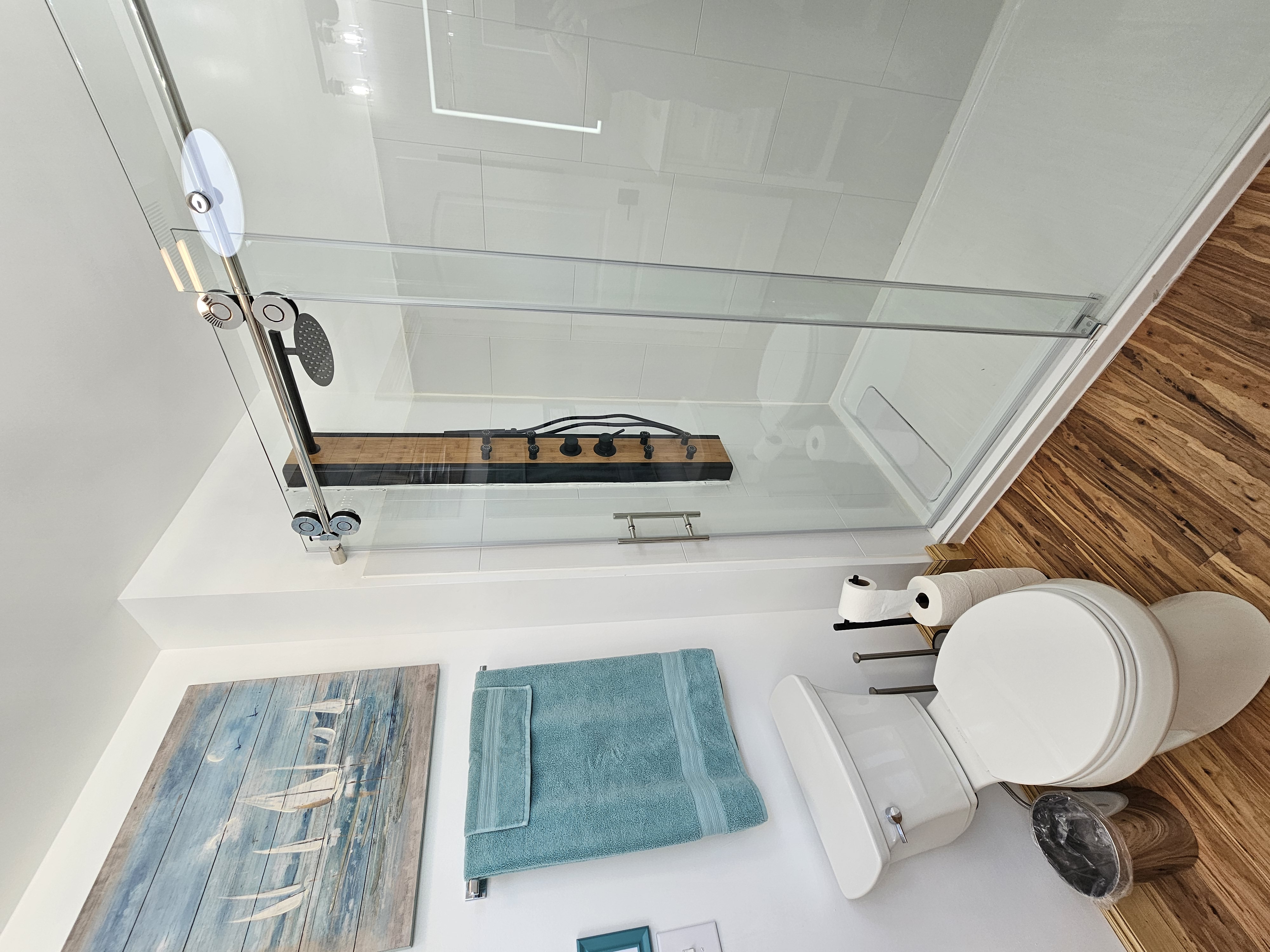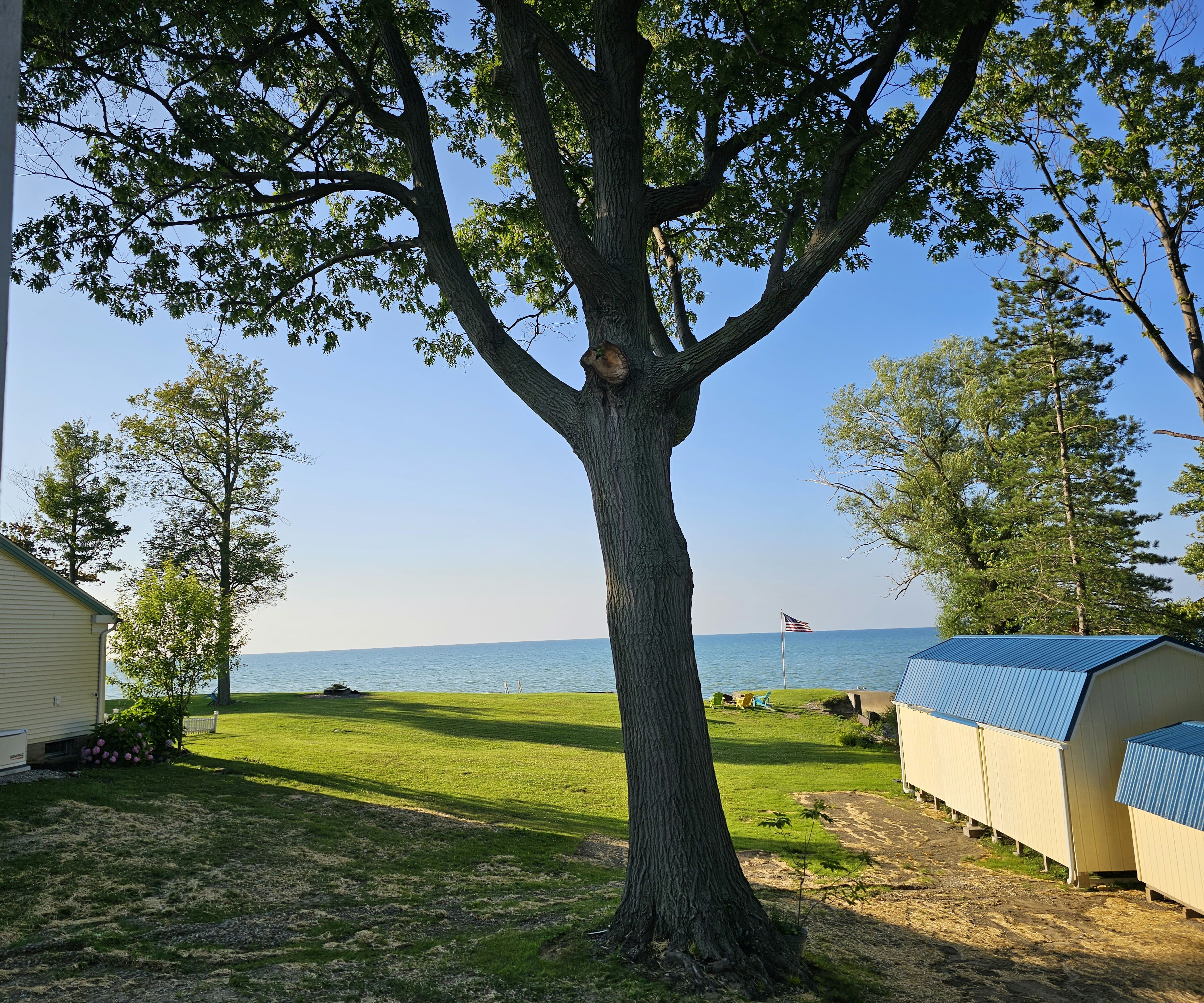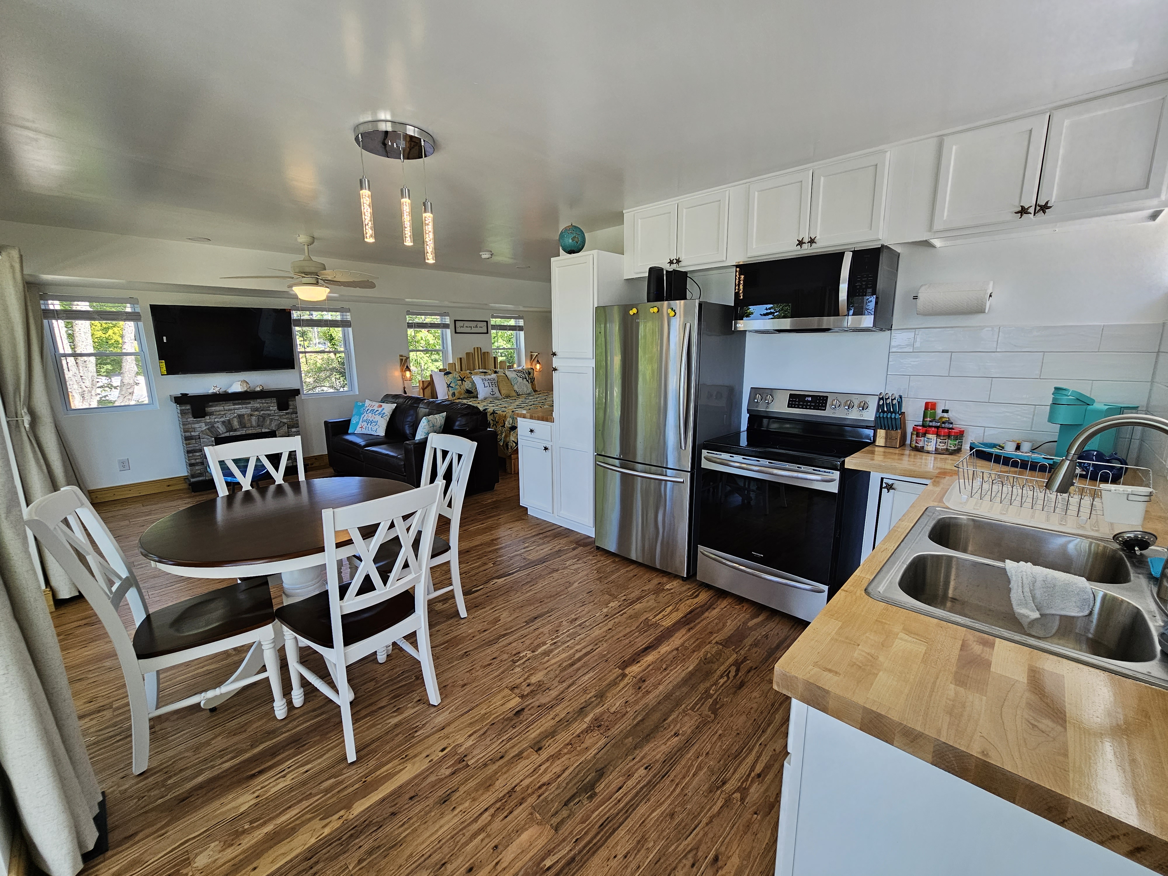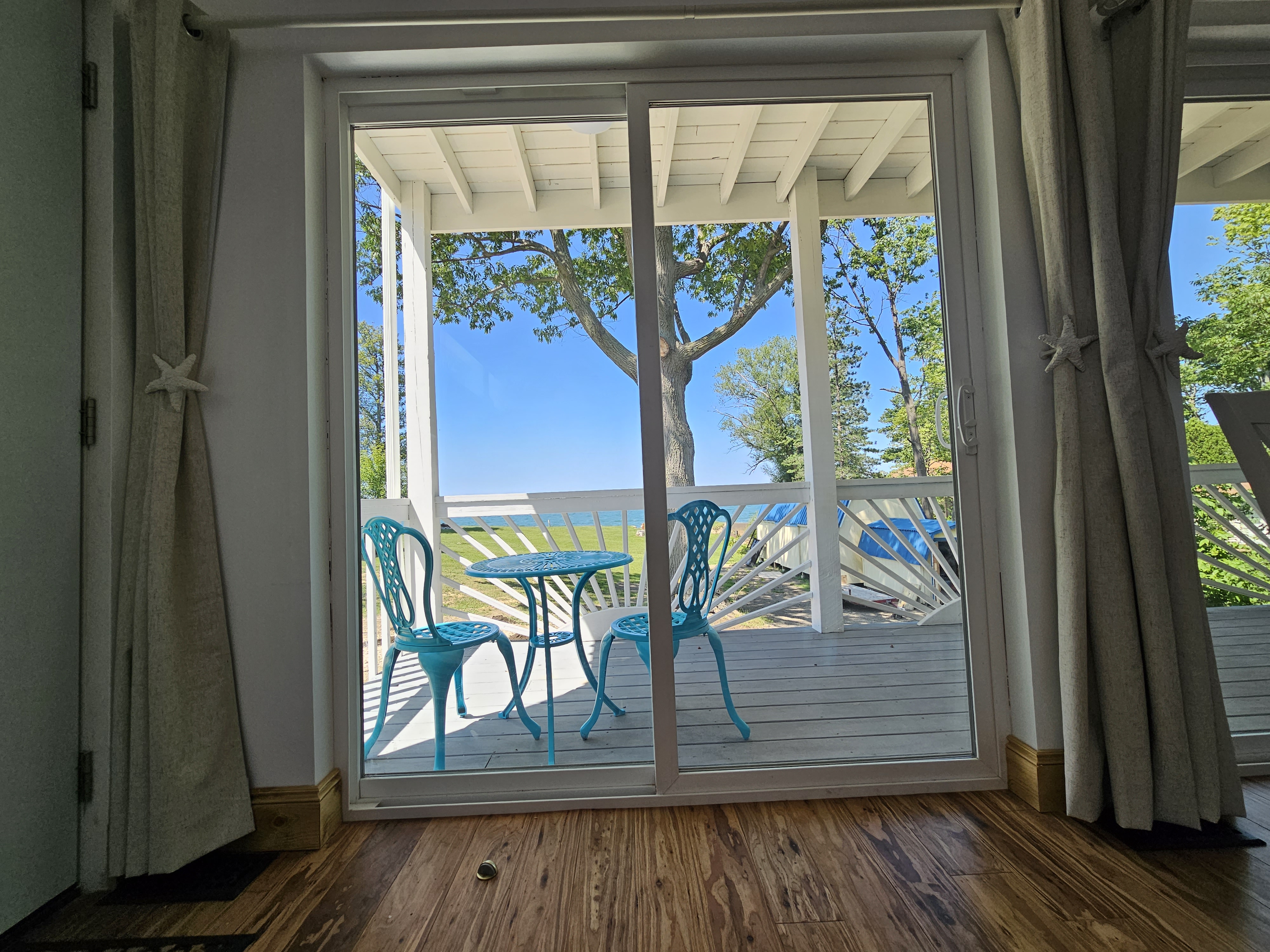 Built in 2023, SeaSide Cottage has an Open-Floor-Plan Layout, providing amazing views of the Lake Erie Water-Front through 3 large sliding glass doors, leading to a private balcony, complete with Adirondack Chairs & a boutique breakfast table and chairs. Two full bathrooms, both with showers, one larger SPA style+SPA shower, both have overhead heat & LED mirrors. A Helix brand King-size bed provides luxurious comfort, a leather couch bed (Queen), an electric fireplace, and a 50" HDTV. Designed for Romantic getaways.